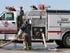CFR Engine 90 commanded by Lt Daniel Moore arrived at the fire scene at 10:14am; he surveyed the situation before taking command. “The RV was on the shoulder of the roadway, and was fully involved in fire. The St. B. Firefighters were on scene and had already initiated a fire attack…”