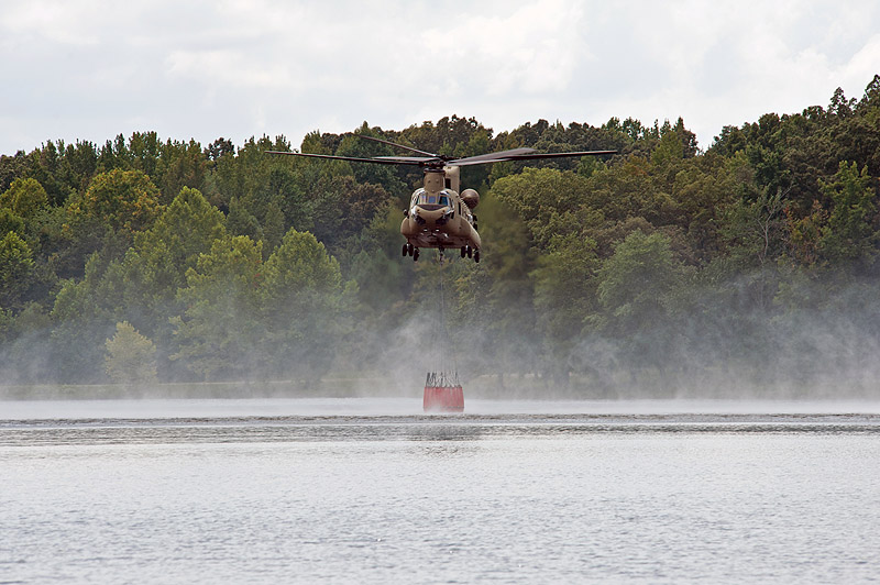 “We deal primarily with spot fires,” said Chief Warrant Officer 2 William Haynes, B 6-101st CAB CH-47 instructor pilot. “You won’t see us flying into the middle of a 6000 acre fire. We’ll be taking care of hot spots around the edge of the fire helping to contain the fire and redirect it away from certain areas. Two-thousand gallons of water is plenty to keep a small area wet and keep it from burning.”
