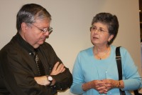 Council members Geno Grubs and Deanna McLaughlin address reception guests.