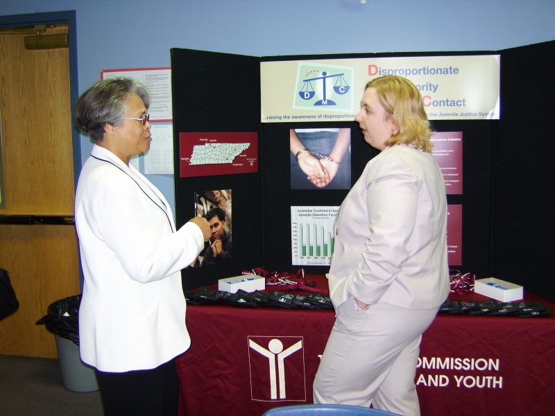 Debrah Stafford Juvenile Justice Director talks with Sarah King Juvenile Public Defender