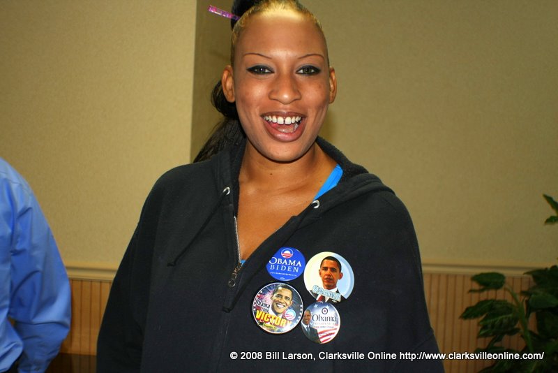 Adeline Burr, 100 years young, was seated at the MCDP/Clarksville for Obama celebration. She had not voted in 20 years, but re-registered for the 2008 election. She not only went to the polls to cast her Obama vote, she spent time at the Riverview Inn reception despite recent surgery on her knees. She has seen a lifetime of political change and political battles, and had lived through segregation and the civil rights movement. To see a Black American step into the presidency is something she once could only dream about.
