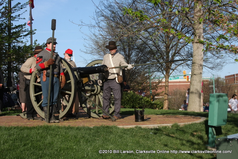 The carriage the cannon was placed on was used in the civil war, and is on long-term loan to Clarksville from the Shiloh National Battlefield.