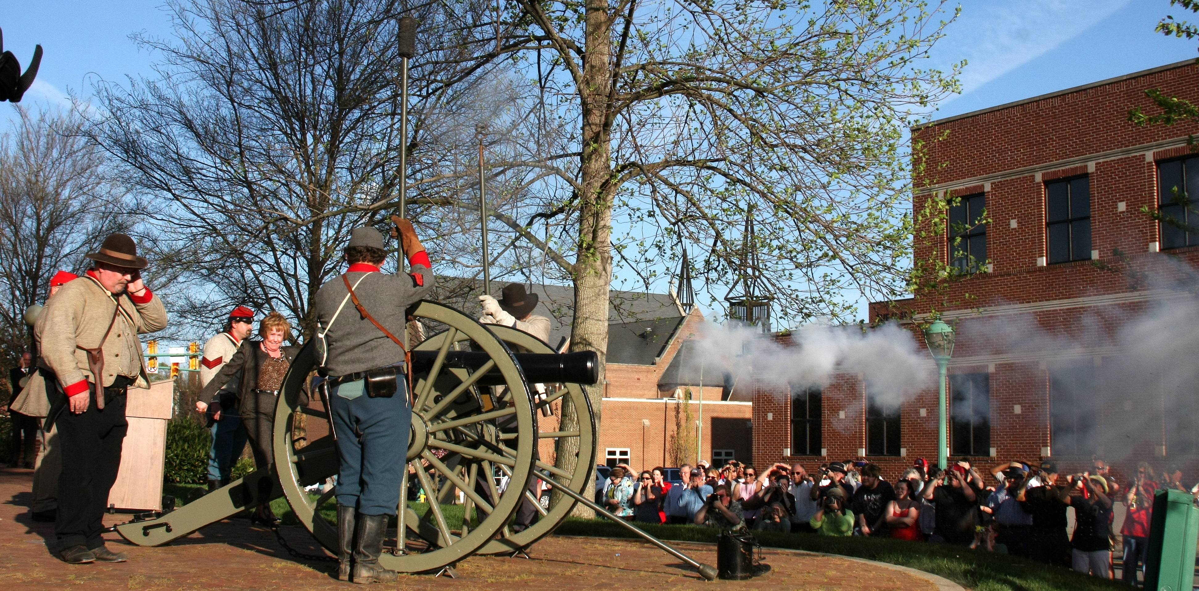 The new site will feature a fully working replica of an 1847 six-pounder canon that was created from Civil War Era plans. The cannon was cast and donated by the Clarksville Foundry and has been placed at the Montgomery County courthouse until it is able to be relocated to Ft. Defiance/Ft. Bruce when the interpretive center construction is completed in late 2010. The cannon is the first to be made in Montgomery County since the Civil War. At the official kickoff event the canon was fired by County Mayor Carolyn Bowers.