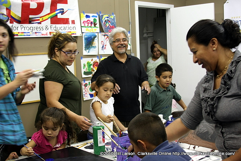 On June 5th Nashville Artist Jorge A. Yances came to Clarksville to work with the children at the Hispanic Organization for Progress & Education (H.O.P.E.) to create a mural for their first annual Create, Paint, and Express Yourself youth summer program. The mural was put on display at the Clarksville-Montgomery County Public Library yesterday, and will remain there until the end of the month.
