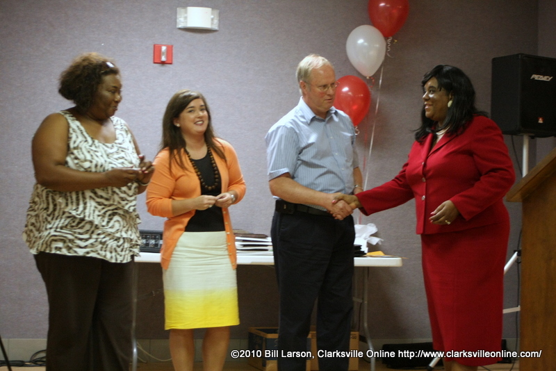 Both the City and County Mayors recognized the contributions of retiring Executive Director Linda D. McCoy who has for nine years shepherded the local chapter through a series challenges including the 9/11 attacks, a Tornado, The destruction of their Emergency Response Vehicle by arson in 2008, financial hardships, and Great Flood of 2010 with the associated loss of their Riverside Drive headquarters. Throughout all that the Red Cross has been out in the community providing relief to people throughout the area in disasters both big and small. Montgomery County Mayor Carolyn Bowers attended the Banquet and presented the award on behalf of the County.