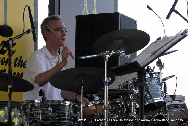 The Clarksville Jazz Quintet performed at Jazz on the Lawn on Saturday evening. This popular group played the inaugural Jazz on the Lawn Concert at the Beachaven Winery in 1987. The Clarksville Jazz Quintet is made up of area teachers who get together to play jazz for fun and relaxation. The group includes among its members APSU Professor of Percussion David Steinquest on the drums.
