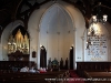 Architect Lane Lyle, responsible for the church’s overall renovation, described the extensive recreation of the building from callipered measurements of computer generated drawings. Scaffolds were in place for seven months alone for the replacement of ceiling panels that had to be constructed on the floor of the church prior to their being raised. The roof system is an exact replica of the original roof except the new roof is insulated, Mr. Lyle related. He said that coal dust used to drift down from the original ceiling. “I have a new appreciation for workmen in the last century who accomplished all this without power tools; they used poles and mules to raise these trusses,” he said.