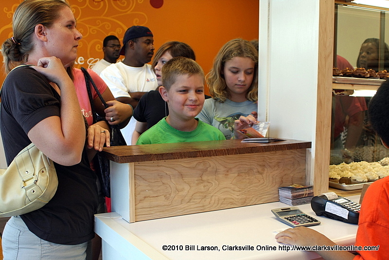 The success of that campaign was easy to see opening day as when we arrived, there was a large crowd waiting outside for the doors to open; and for most of the day, the line was wrapped around the inside of the building and continued on through the front door. Everyone we spoke to that day said they were absolutely delighted that the Cupcake Collection’s new home in Clarksville was finally open for business.