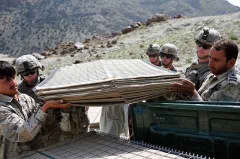 Nangarhar Province, Afghanistan – Soldiers from Task Force Spartan journeyed to Afghan Border Police outpost Salala with blast wall barriers, pick axes and shovels September 27th to help the ABP fortify their position.