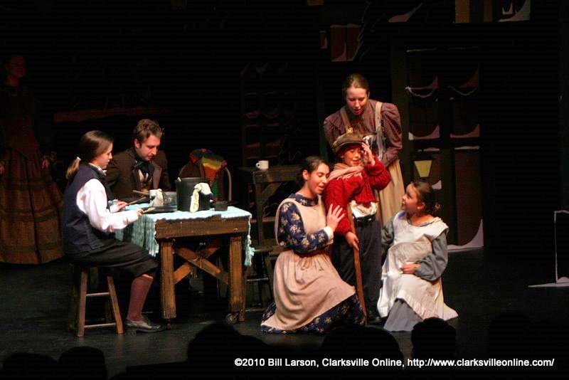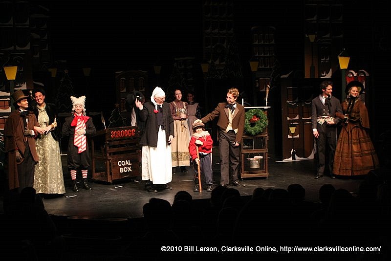 The show features Ryan Bowie, Travis Kendrick, Lisa MacAfee, Jackie Ostick, Collin Smith, Kendall Anne Thompson, and Nate Washburn, along with a rotating cast of thirty-four local youth portraying the Cratchit family children.