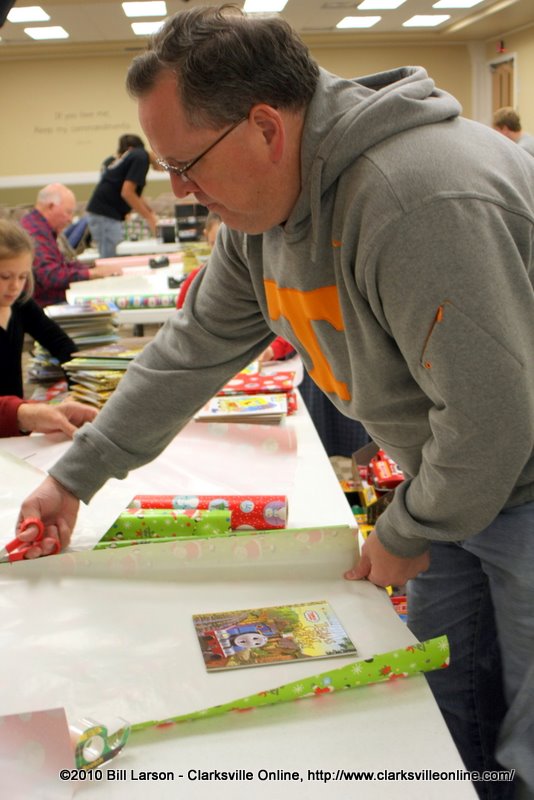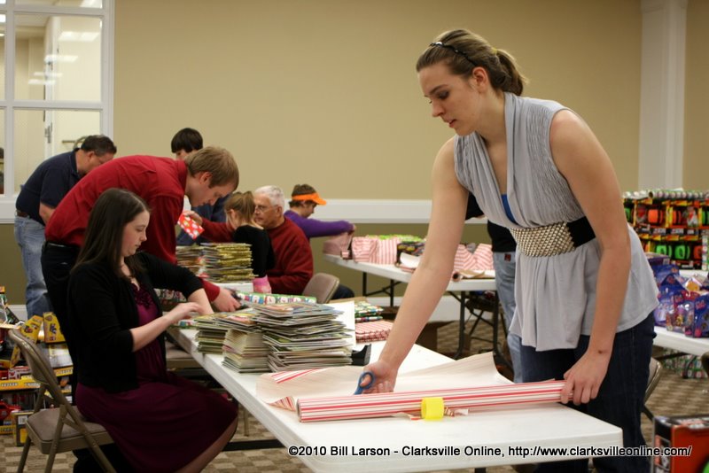 It all kicked off on Monday when roughly 50 people gathered at First Baptist Church to wrap over $7,000 in toys purchased from area Walmarts. The Walmart Corporation gave the Kiwanis Club a generous discount as a donation to the program. The Toy’s included Disney Princess Dolls, Hasbro’s Littlest Petshop dolls, children’s books, Nerf Weather Blitz All-Conditions Footballs, Fisher-Price Dora the Explorer Mega Tunes Guitars, winter hats and gloves, Tonka Lights & Sound – Rescue Force trucks and helicopters, and Road rippers – Street Screamers cars.