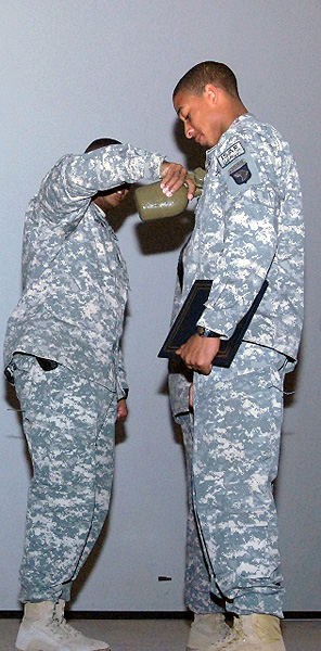 Before McReynolds pledged himself to being a leader of Soldiers during the ceremony, the new sergeant sat with approximately two dozen others as they were told about the position and responsibilities they must fulfill.