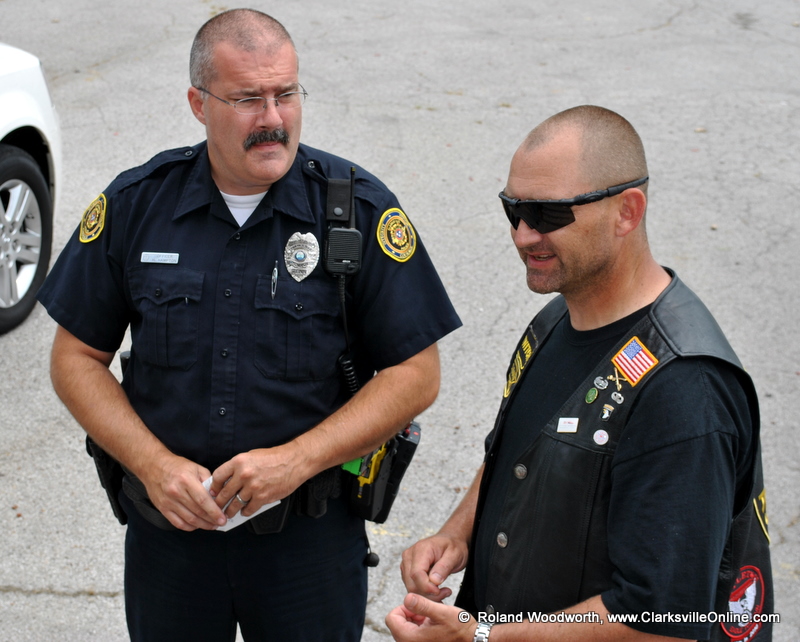 The team toured many areas of Clarksville Sunday and Monday to capture everything Patriotic in Clarksville and on Sunday including a visit to to area restaurants, homes and the Bikers Who Care clubhouse. Here Bikers from several clubs came together to escort Tawny and Chris as the made their way to Fort Campbell to enjoy a BBQ at General Campbell’s home. Not even a brief rain shower would dampen their spirits. Afterwards they made their way to the Division Parade Field for the 2011 Fort Campbell Independence Day Celebration.