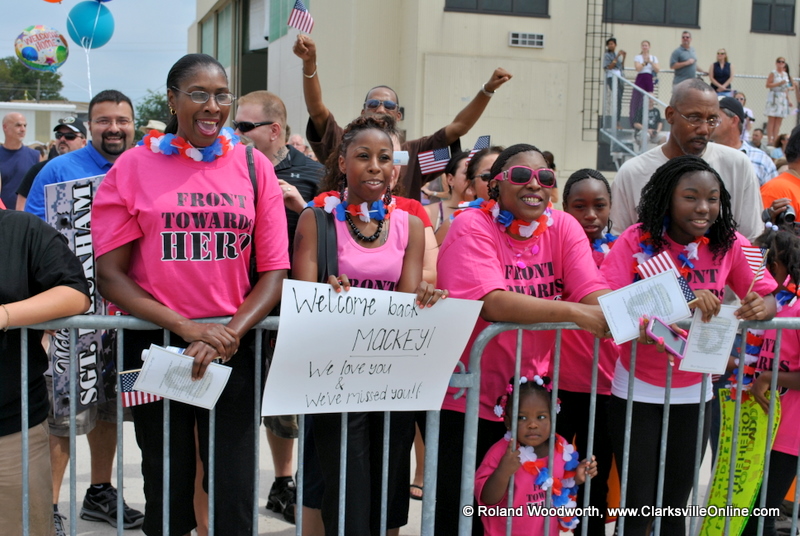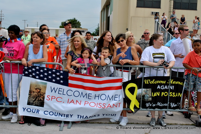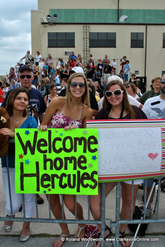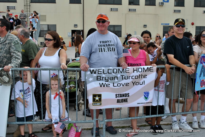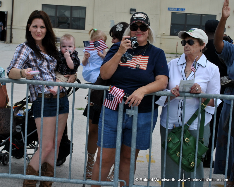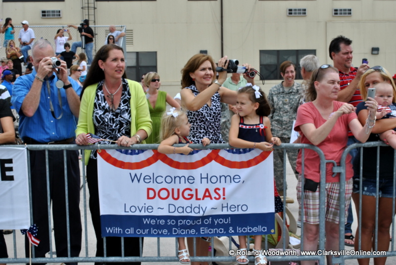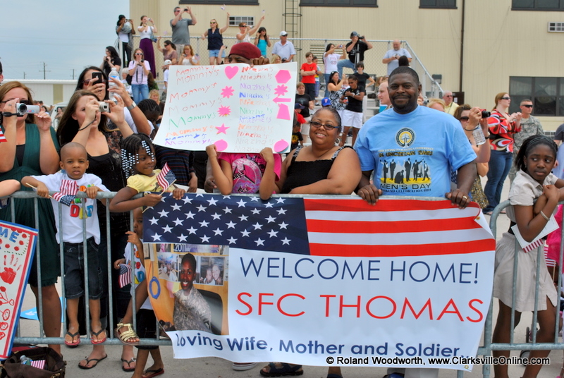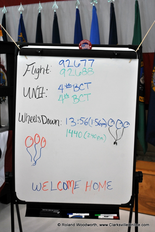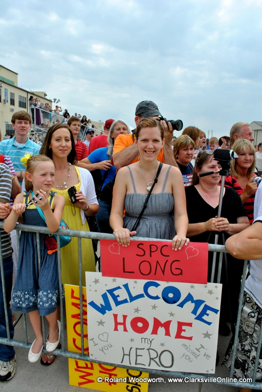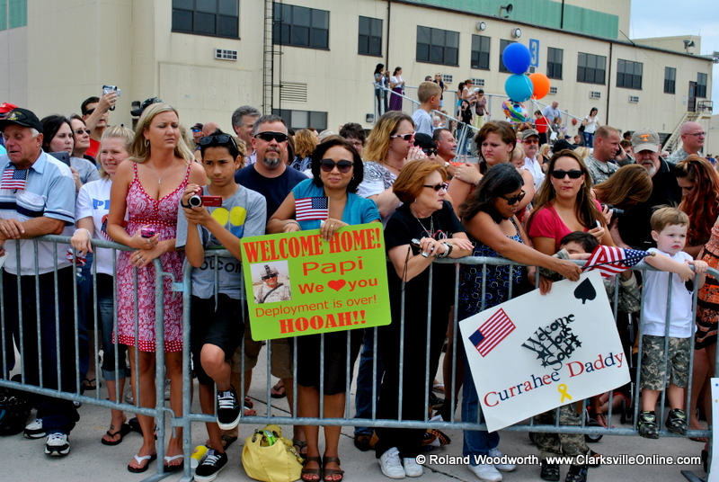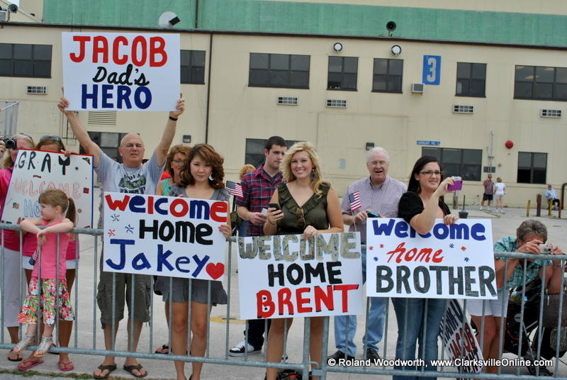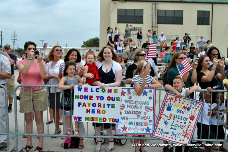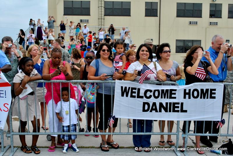 If you wish to attend a Welcome Home Ceremony, check the flight schedules online, as times are subject to change at anytime. When arriving to Fort Campbell, enter via Gate 7; if you don’t have installation stickers on your vehicle, you will be required to get a visitor pass. From there just follow the signs to the ceremony parking. Waiting buses transport family members safely to the hanger.