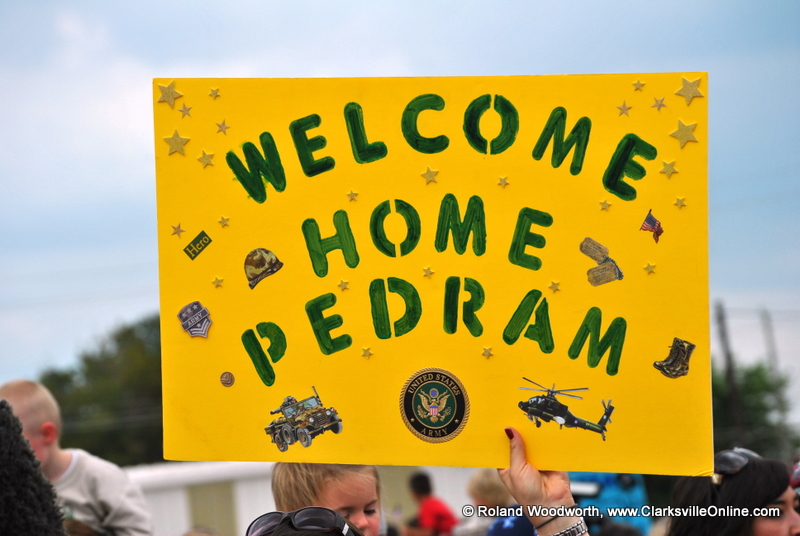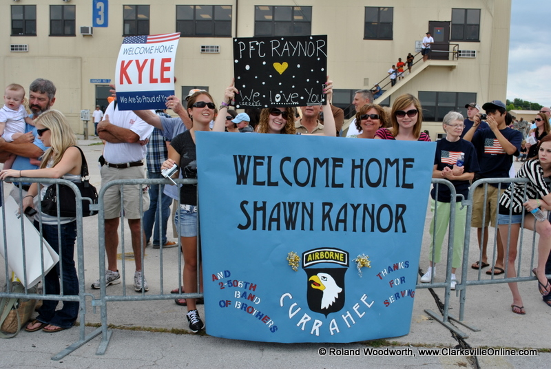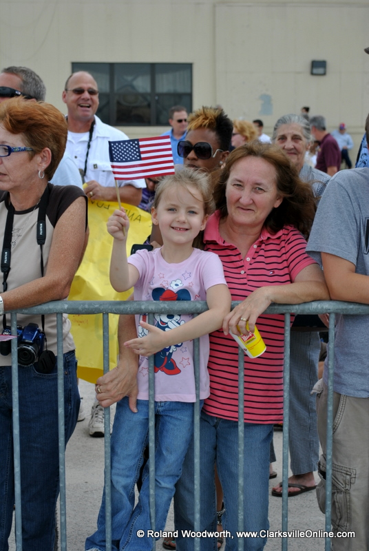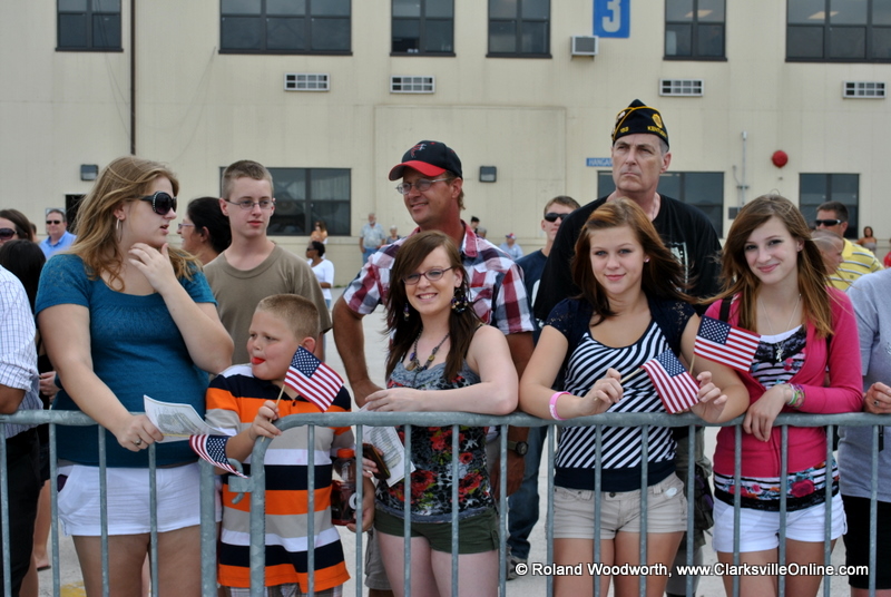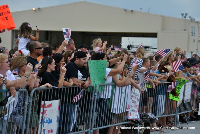 If you wish to attend a Welcome Home Ceremony, check the flight schedules online, as times are subject to change at anytime. When arriving to Fort Campbell, enter via Gate 7; if you don’t have installation stickers on your vehicle, you will be required to get a visitor pass. From there just follow the signs to the ceremony parking. Waiting buses transport family members safely to the hanger.