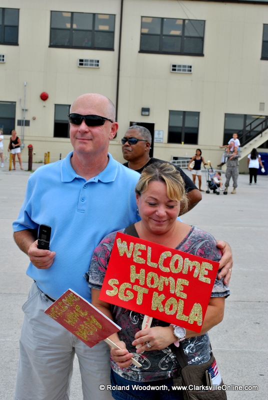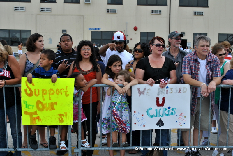 Friends and family members packed hanger 3 for the arrival of their soldier. As the 15 minute notice was given many made their way out to watch the plane arrive.