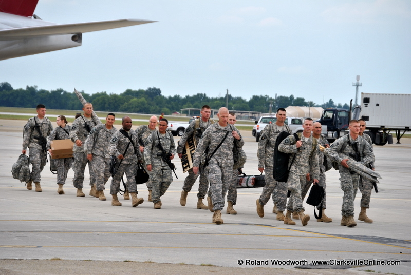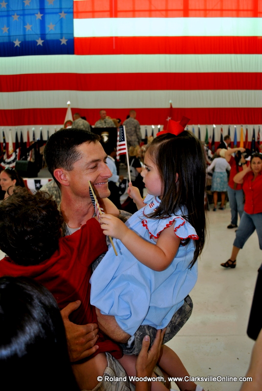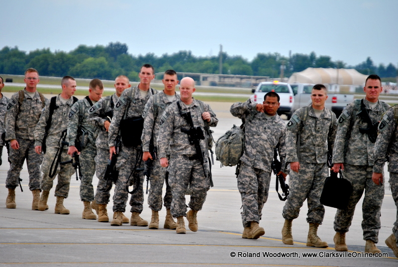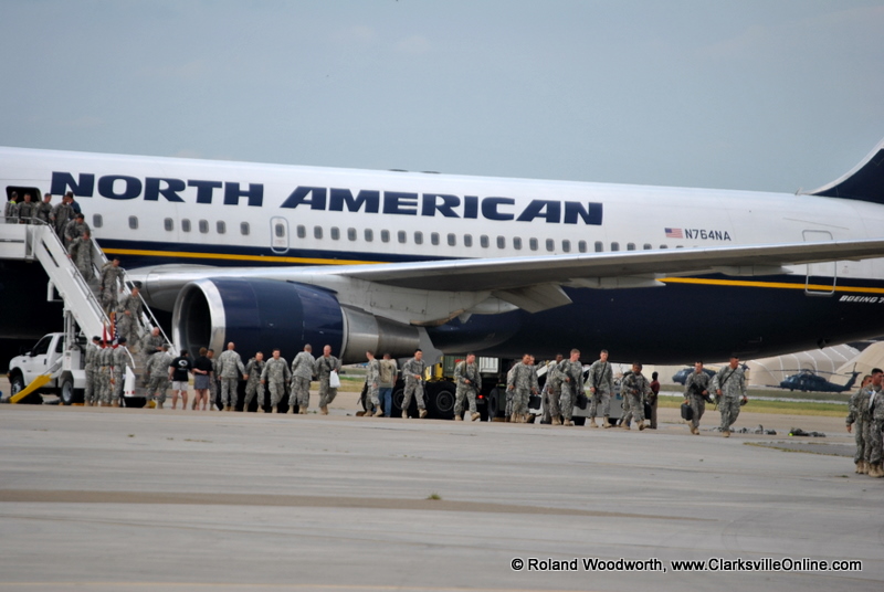 Fort Campbell, KY – It was a joyful day at Campbell Army Airfield as 538 soldiers with the 4th Brigade Combat Team arrived home after a year long deployment to Afghanistan. As they stepped off the plane, they were greeted by The Secretary of the Army, John McHugh along with Major General John F. Campbell and others.