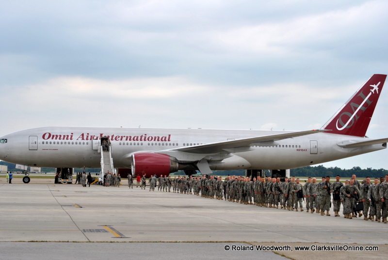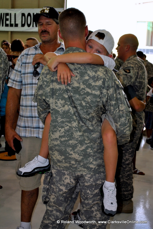 If you wish to attend a Welcome Home Ceremony, check the flight schedules online, as times are subject to change at anytime. When arriving to Fort Campbell, enter via Gate 7; if you don’t have installation stickers on your vehicle, you will be required to get a visitor pass. From there just follow the signs to the ceremony parking. Waiting buses transport family members safely to the hanger.