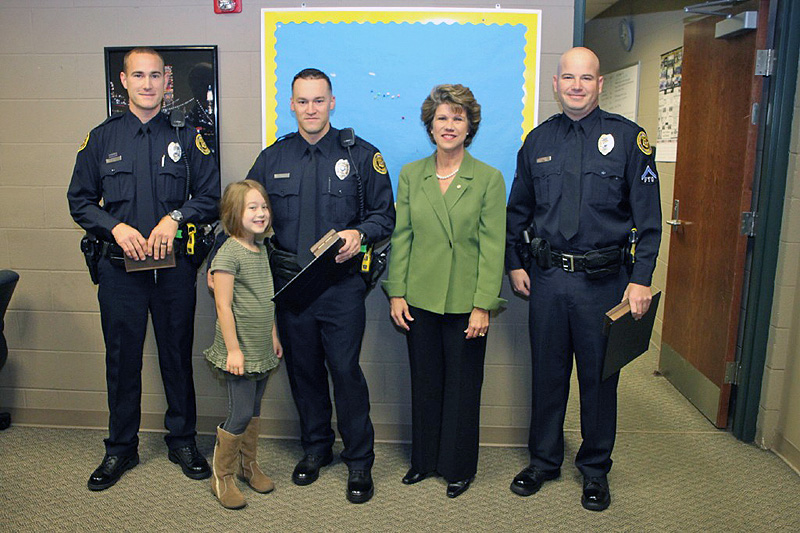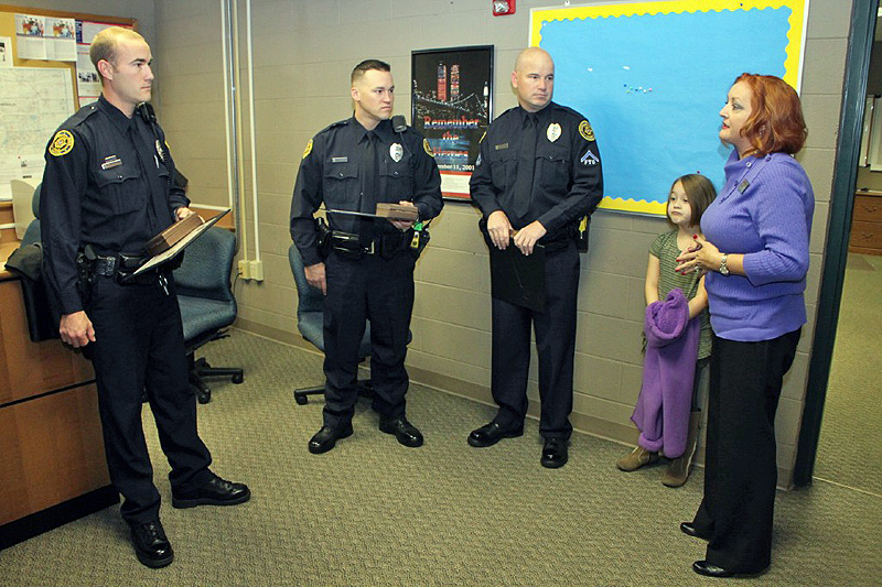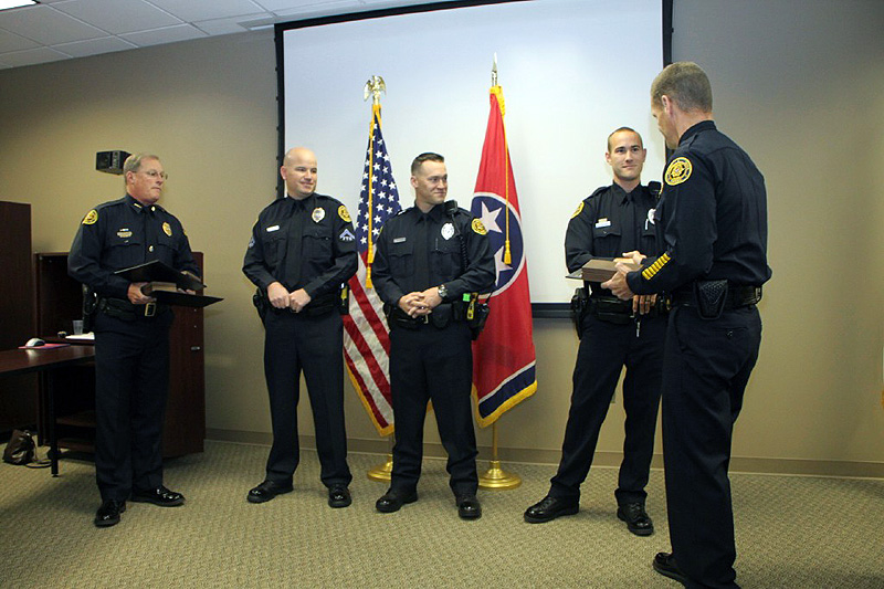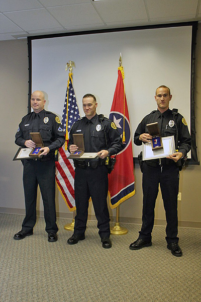 Clarksville, TN – On November 18th, 2011, Officers Jeff Danault, Mark Wilson, and Nathan Lee were presented with The Lifesaving Award at a ceremony held at Police Headquarters. The Lifesaving Award is given to officers whose actions saved or extended the life of another person.