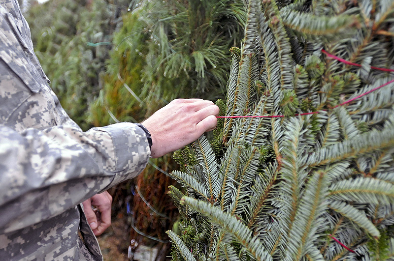 Hundreds of soldiers around Fort Campbell including Spc. William Snyder from the 1st Brigade Combat Team received vouchers to pick up a free Christmas tree donated by Trees for Troops.