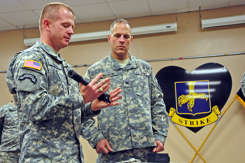 The Strike MP’s first sergeant, 1st Sgt. David Ward, is honored to have his teams utilize the new weapon system and attributes it partly to their accomplishments achieved in Operation Enduring Freedom 10-11.“Since I have the brigade MP platoon in my company, I feel the initial deployment of these weapons to Strike is a testament to the service the Strike Soldiers have always exemplified, but most specifically in our last deployment into Afghanistan,” said Ward, talking about the brigade’s engineers and MPs. “Both of these elements of the brigade did some outstanding work in Afghanistan and it is nice to see them be the first to field the latest and greatest systems.”
