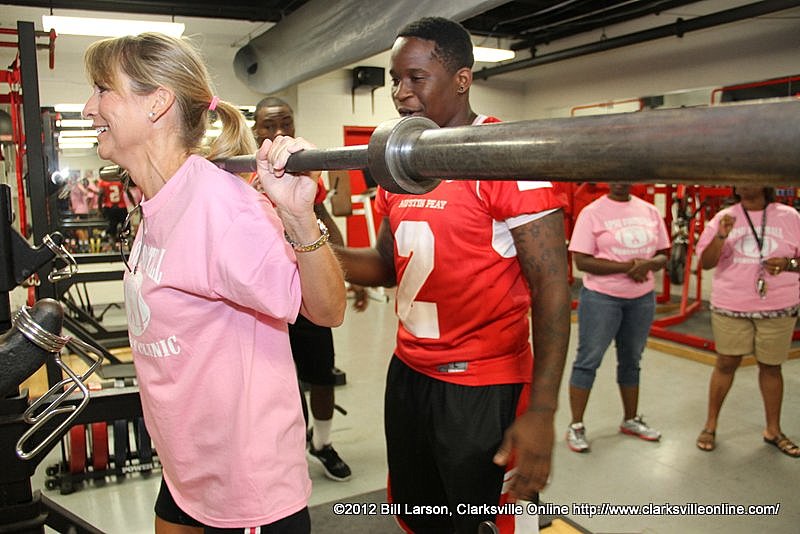 “We are primarily trying to raise awareness of breast cancer, but also we want to get ladies interested in football,” said APSU Head Coach Rick Christophel. “More and more they are starting to watch football, and when they know what’s going on they can tell their husbands a thing or two about the game,” he joked. “Women are also getting involved in fantasy football, and by knowing the game better, they will be able to make better choices.”