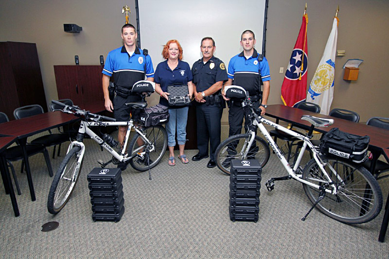 Clarksville, TN – Kaye Jones, President of the Citizens Police Academy Alumni Association (CPAA), presented the Clarksville Police Department with over $3,600 of invaluable equipment for the bike officers.