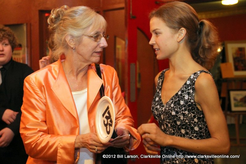 At the Roxy Gala, a veritable who’s who of Clarksville gathered to enjoy a fine dining experience under the tents on Franklin Street. The meal was provided by the Bound’ry from Nashville, Tennessee, and featured filet of beef and crab cakes, tuna and raspberry salad, mushroom demi, parmesan roasted potatoes, seasonal vegetables, an array of desserts, and wine from the Beachaven Winery. Roxy actor and musician Ted Jones provided background music for the diners on his harp.