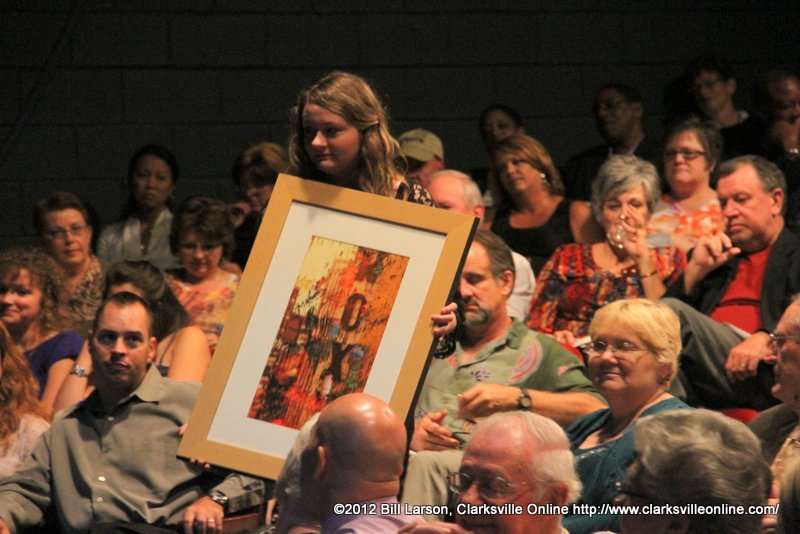 At the live auction Sammy Stuard the CEO and President of F&M Bank served as the auctioneer for the evening as donated items from local artists of note were auctioned off one by one helping to raise money for the new Roxy Regional Center for the Arts. Jeffrey Ellis from Broadway World Nashville was on hand for a special presentation to 9-to-5 star Bailey Hanks.