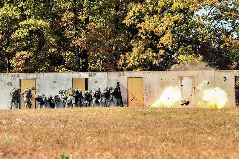 Fort Campbell, KY – “Fire in the hole! Fire in the hole, Fire in the hole!” screams a combat engineer, then the sound of a soft click leaves his hands and then a deafening boom; a secured doorway is no more.
