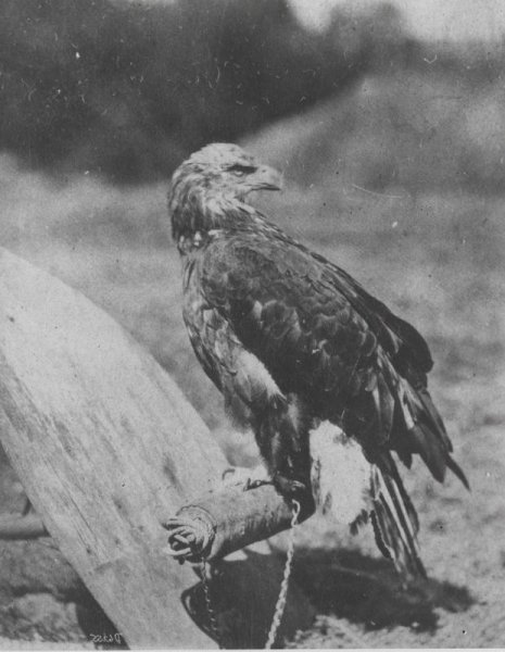 In 1861, an American Indian named Ahgamahwegezhig — or Chief Sky — a member of the Flambeau band of the Chippewa tribe, cut down a tree in an attempt to capture two American Bald Eaglets in their nest. Chief Sky later traded the surviving eaglet to Daniel McCann of Eagle Point, Wisconsin, for a bushel of corn.