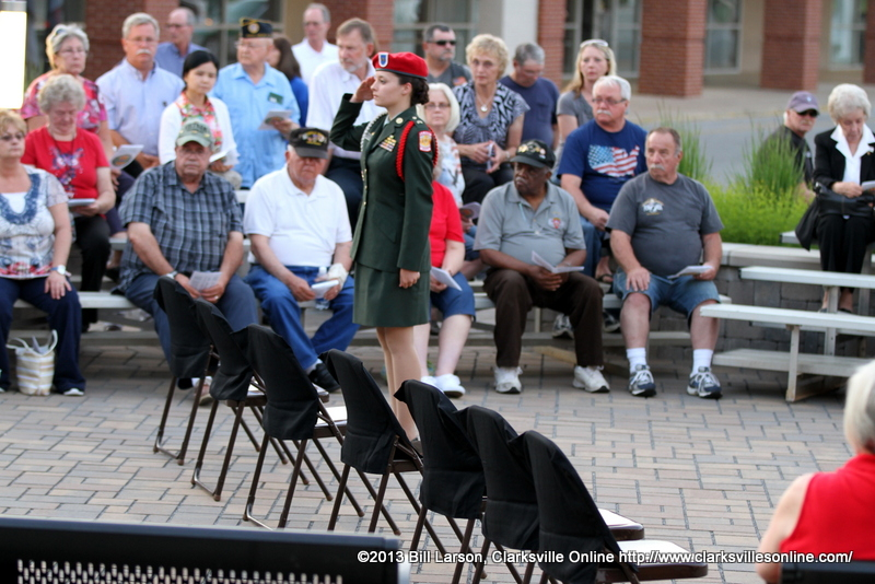Clarksville, TN – It is a solemn occasion when a nation gathers together to honor its soldiers, those who lived to come home, but even more importantly those who did not. No remains were returned during the previous year, that leaves 30 remaining missing POW/MIA’s from the State of Tennessee. Each one was honored in a ceremony held in front of the William O. Beach Civic Center at Veterans Plaza in Clarksville Tennessee on Sunday evening.