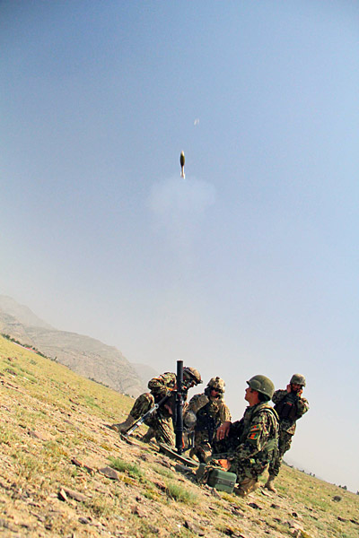 Khowst Province, Afghanistan – In an effort to increase response to indirect fire, soldiers with the Afghan National Army’s 2nd Khandak, 1st Brigade, 203rd Corps, conducted a live fire exercise with the 60mm mortar system, June 22nd, at Camp Parsa, Afghanistan.