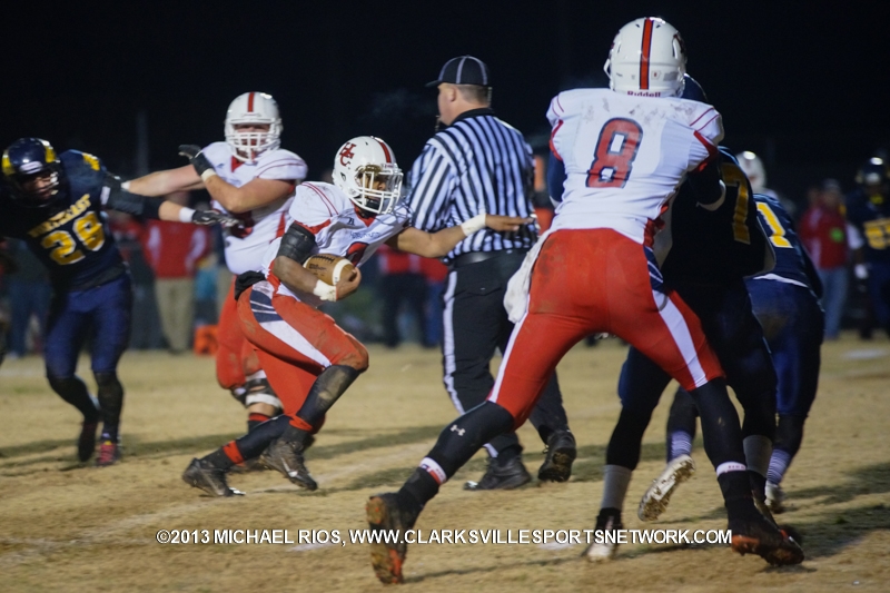 Clarksville, TN – The Henry County Patriots pounded out 270 total yards and five touchdowns on the ground to eliminate the Northeast Eagles in state semifinal football play, 43-14.