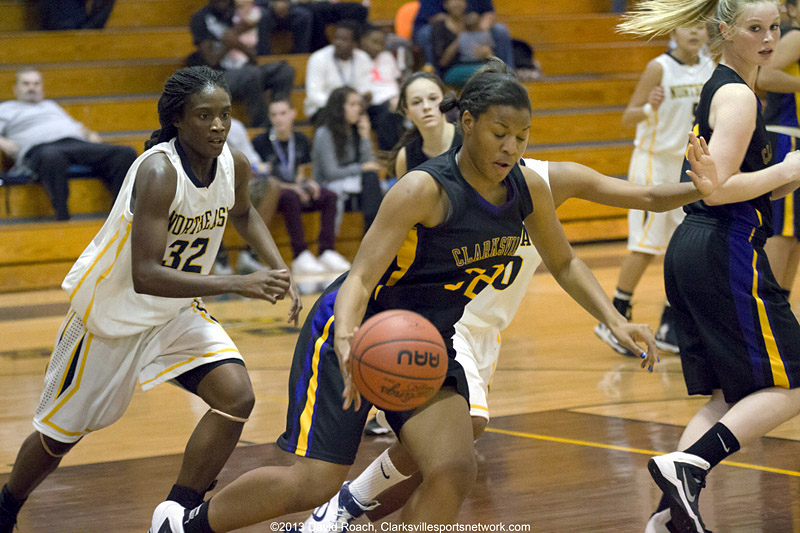 The second quarter would see the Clarksville High build its biggest lead of the game, 12 points, over the first 5:51 of the period, with Northeast not scoring in the quarter until Michelle Donner knocked down a three at the 1:41 mark to cut the deficit to nine, 21-12.