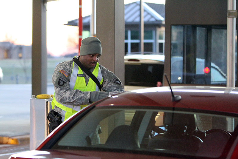 With an average of nearly 40,000 vehicles entering the post each day, the soldiers on the gates face an almost endless flow of traffic to check. Also, the gates are open every day, with three gates being open 24 hours a day, every day of the year, including holidays. Soldiers on the gates must stop every vehicle and check every ID to help keep Fort Campbell safe.