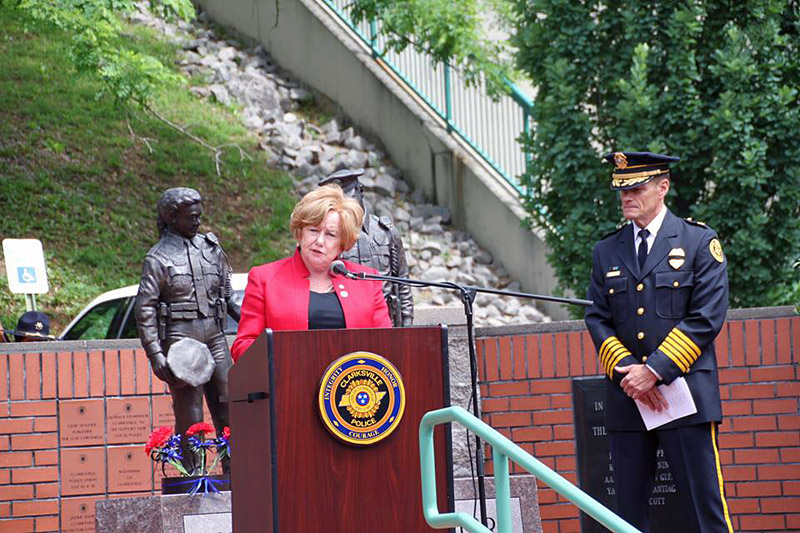 Clarksville, TN – Today, May 15th, 2014, the Clarksville Police Department, Montgomery County Sheriff’s Office, Austin Peay State University Police and Fort Campbell Police Departments joined together with Clarksville Mayor Kim McMillan, Montgomery County Mayor Carolyn Bowers and Assistant District Attorney Dan Brollier to honor the memories of fallen law enforcement officers and deputies.