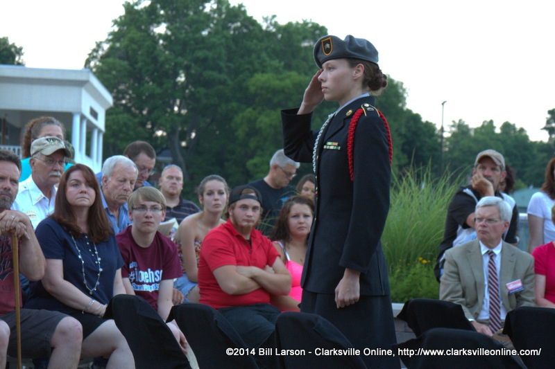 Clarksville, TN – It is a solemn occasion when a nation gathers together to honor its soldiers, those who lived to come home, but even more importantly those who did not. The body of U.S. Army Staff Sergeant Lawrence Woods was buried in Arlington National Cemetery on March 21st of this year. There are 27 remaining missing POW/MIA’s from the State of Tennessee. Each one was honored in a ceremony held in front of the William O. Beach Civic Center at Veterans Plaza in Clarksville Tennessee on Sunday evening.