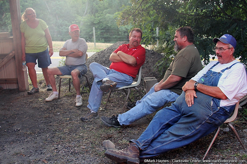 Cunningham, TN – The 106th annual Lone Oak Picnic begins tomorrow, July 26th, at 10:00am. In preparation for the event, Central Civitan Club members began cooking their pork barbeque Friday night at 6:00pm. In total, they are cooking 4 whole hogs and 30 shoulders. They will also cook around 200 chickens.