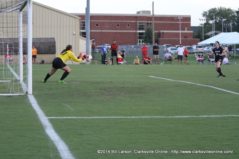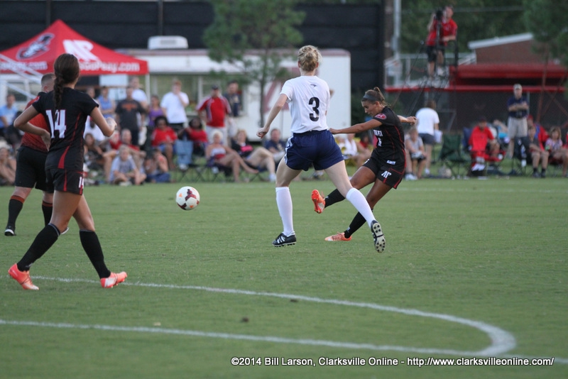 Austin Peay got on the board first thanks to senior Claire Pultz, who lofted a shot over the head of Natalie Irwin, playing out of position in net after Chattanooga lost its starter and backup earlier this weekend. The goal was Pultz’s first since her freshman season in an August 21st, 2011 contest against Chattanooga.