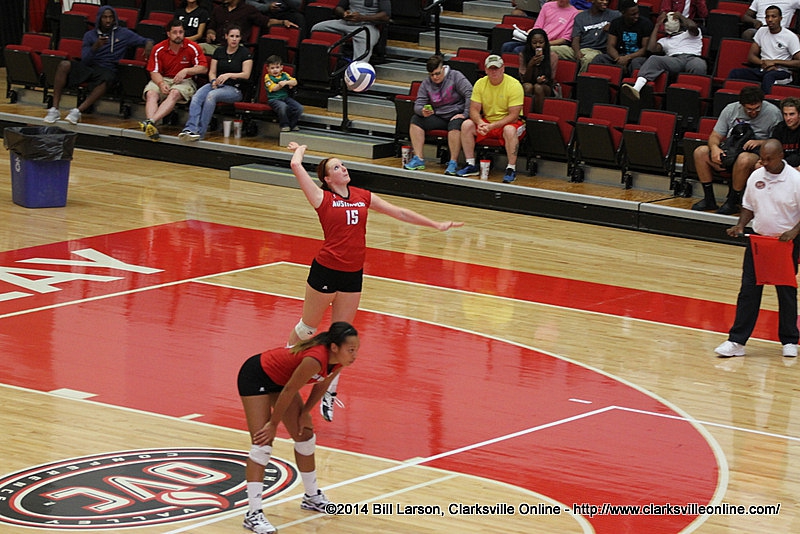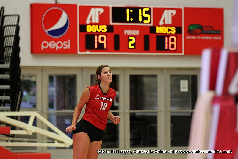 APSU committed seven attack errors in the second set, again three occurring during a 4-1 Mocs run that tied the set at 18-18. That bit of momentum was enough as a later 4-0 UTC run turned the tide for good in a 27-25 victory.