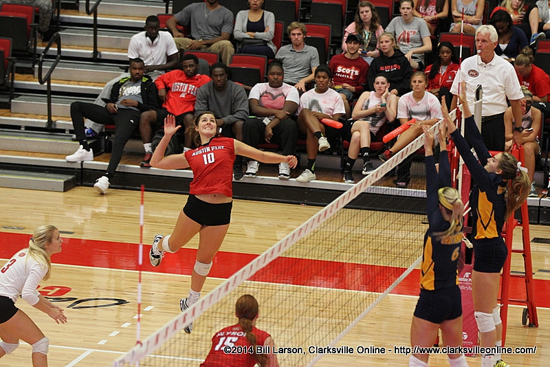Clarksville, TN – A two-set deficit proved too much to overcome for Austin Peay State University’s volleyball team as it dropped a four-set (21-25, 25-27, 25-12, 25-22) nonconference decision to Chattanooga, Tuesday, in its home opener at the Dunn Center.