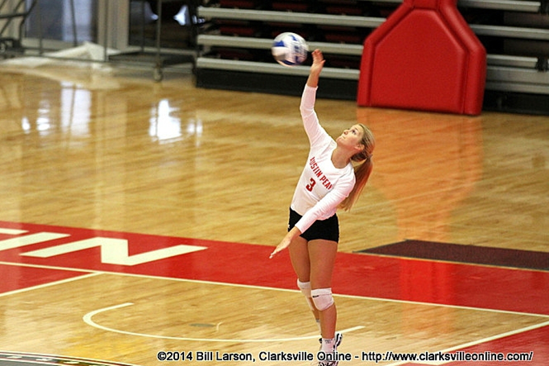 Stotts 22 kills led Austin Peay as she posted a .306 attack percentage. Ebright chipped in 16 kills – seven coming in the second set and another six in the third set – at a .333 attack percentage. Junior outside hitter Samantha Strother finished with 12 kills.
