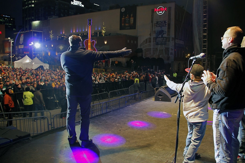 That evening, the group went to Broadway for the Franklin American Mortgage Music City Bowl 2nd Annual Hot Chicken Eating World Championship and the Battle of the Bands with a special performance by country singer Trace Adkins.
