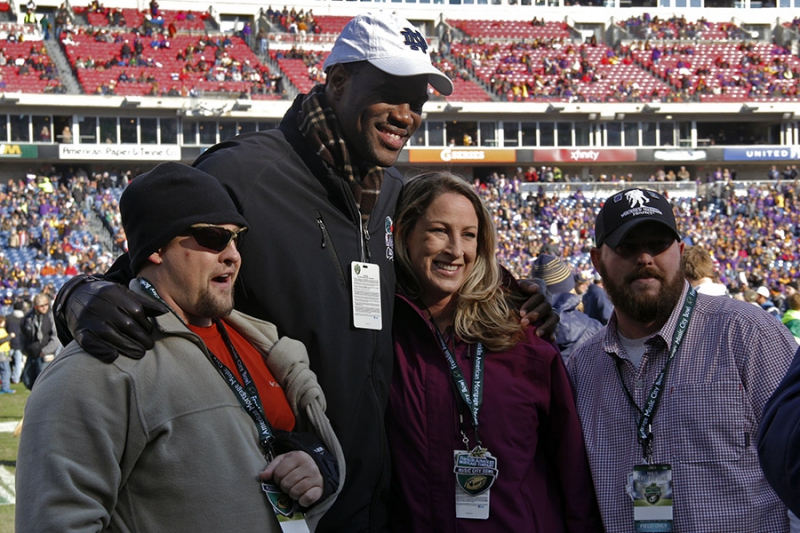 Nashville, TN – Eight wounded warriors, their families, and two Gold Star families were invited as special guests through Humana’s Wounded Warriors Program to the Franklin American Mortgage Music City Bowl in Nashville. The group arrived at the Renaissance Hotel in downtown Nashville on Sunday, December 28th and attended bowl game festivities the next two days.