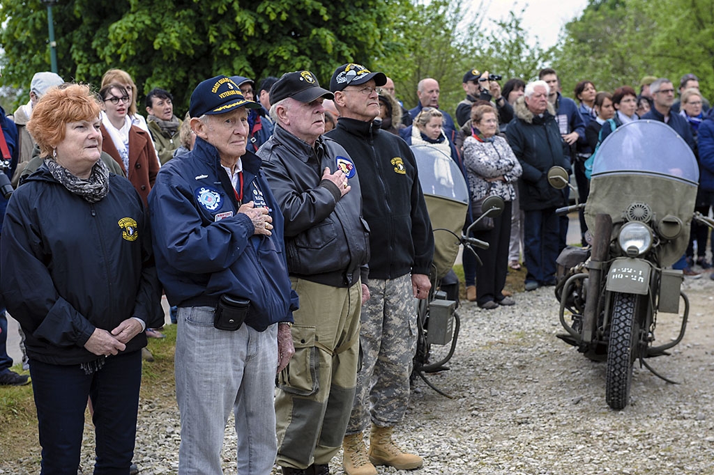 In attendance for the ceremony, part of the 72nd annual commemoration of the Invasion of Normandy in 1944, were Soldiers from the historic 101st Airborne Division (Air Assault) at Fort Campbell, Kentucky, and Airmen from the 86th Airlift Wing at Ramstein Air Base, Germany.