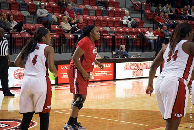 Jacksonville, AL – Senior center Tearra Banks had another dominant performance for the Austin Peay State University women’s basketball team, recording 26 points in a 65-45 loss at Jacksonville State, Saturday, in the Pete Mathews Coliseum.