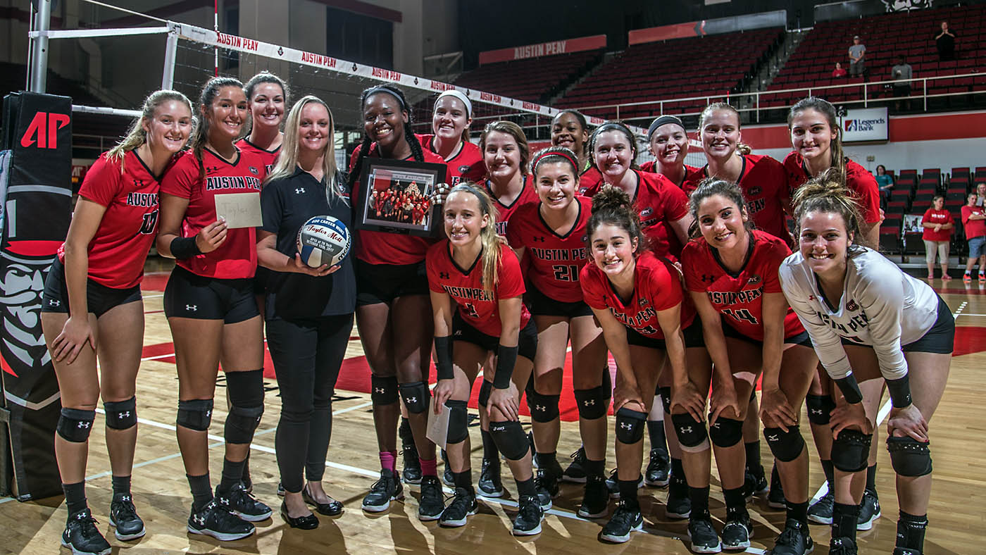 Clarksville, TN – Special teams work carried the day as Austin Peay State University’s volleyball team became the fourth NCAA Division I team to 20 wins this season with a four-set Ohio Valley Conference victory (25-15, 25-14, 13-25, 25-19) against Belmont, Thursday night.