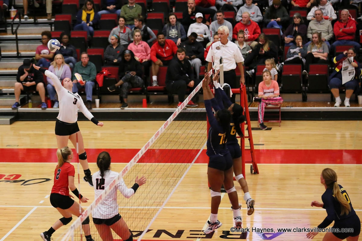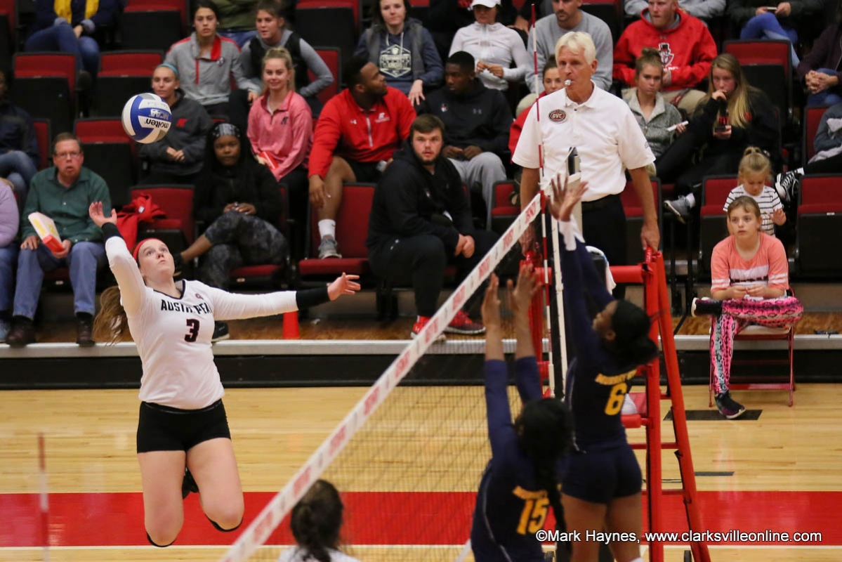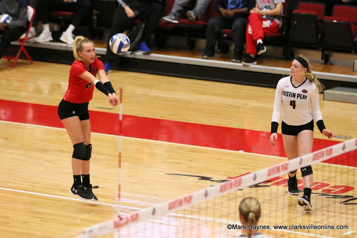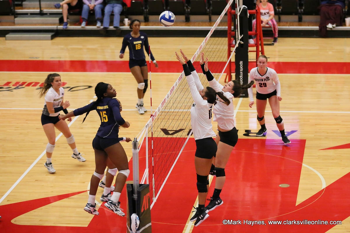 However, MSU’s Giustino hit back-to-back kills to end the threat. Austin Peay posted its own 19-kill set but hit just .164 on the attack. Moore notched six kills to lead the Govs.