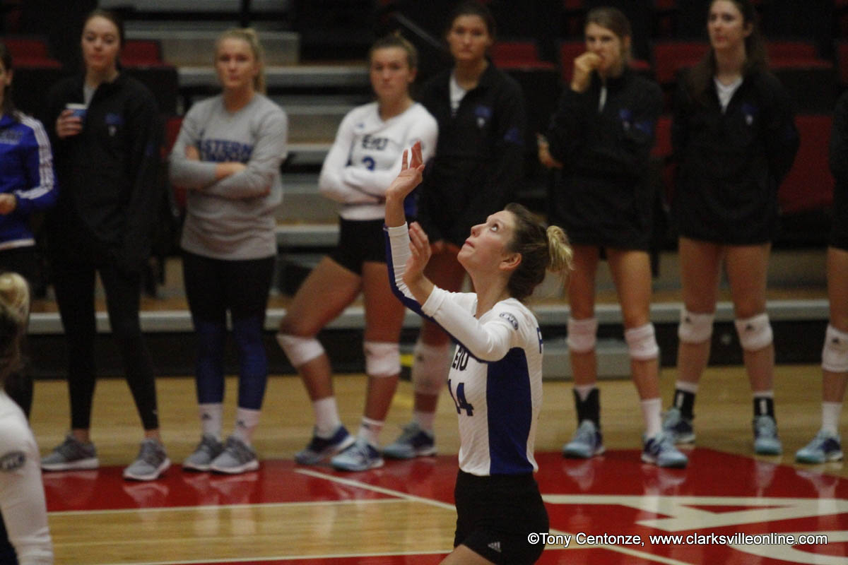 EIU kept its composure though, closing the opening set by scoring five of the final six points — including a block by Allie Hueston and Taylor Smith — for the decisive point in the 25-21 win to go up 1-0. Smith finished with 10 kills for EIU.
